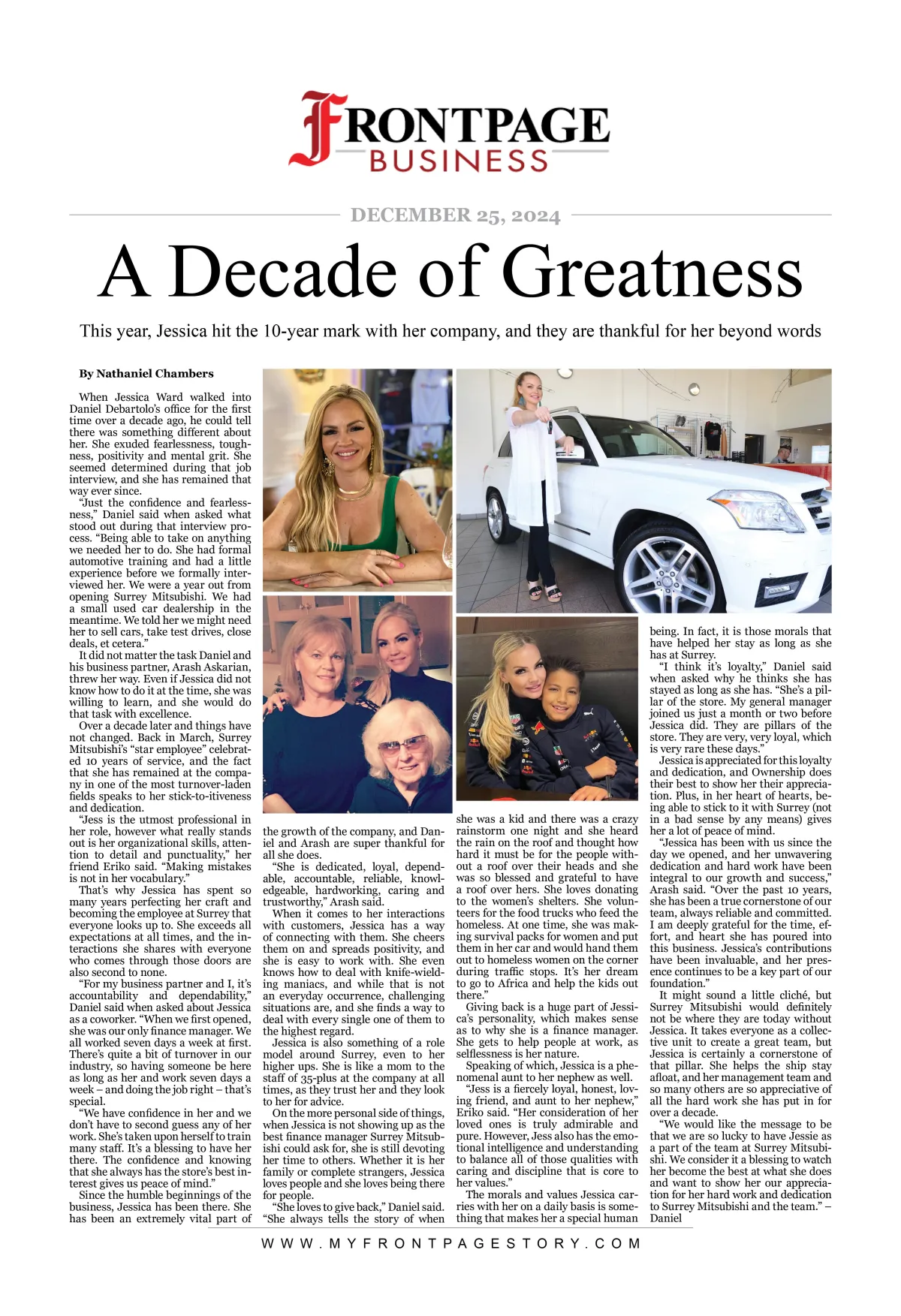 "I have had the pleasure of working closely with Jessica for the past 11 years in my role as General Manager at our automotive dealership. During that time, she served as our Finance Director and proved to be an indispensable member of our team.